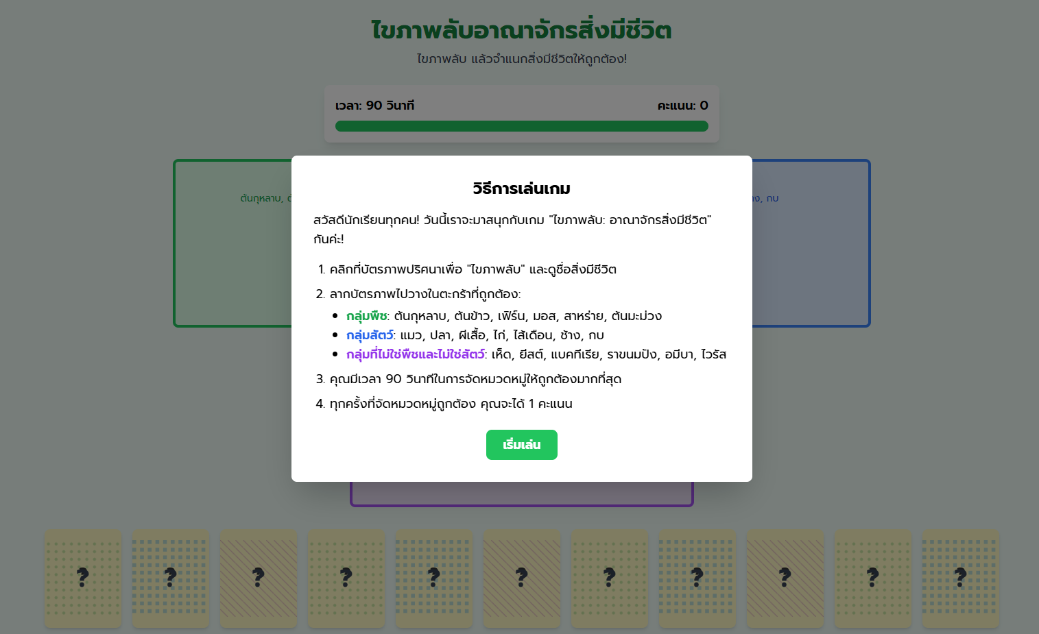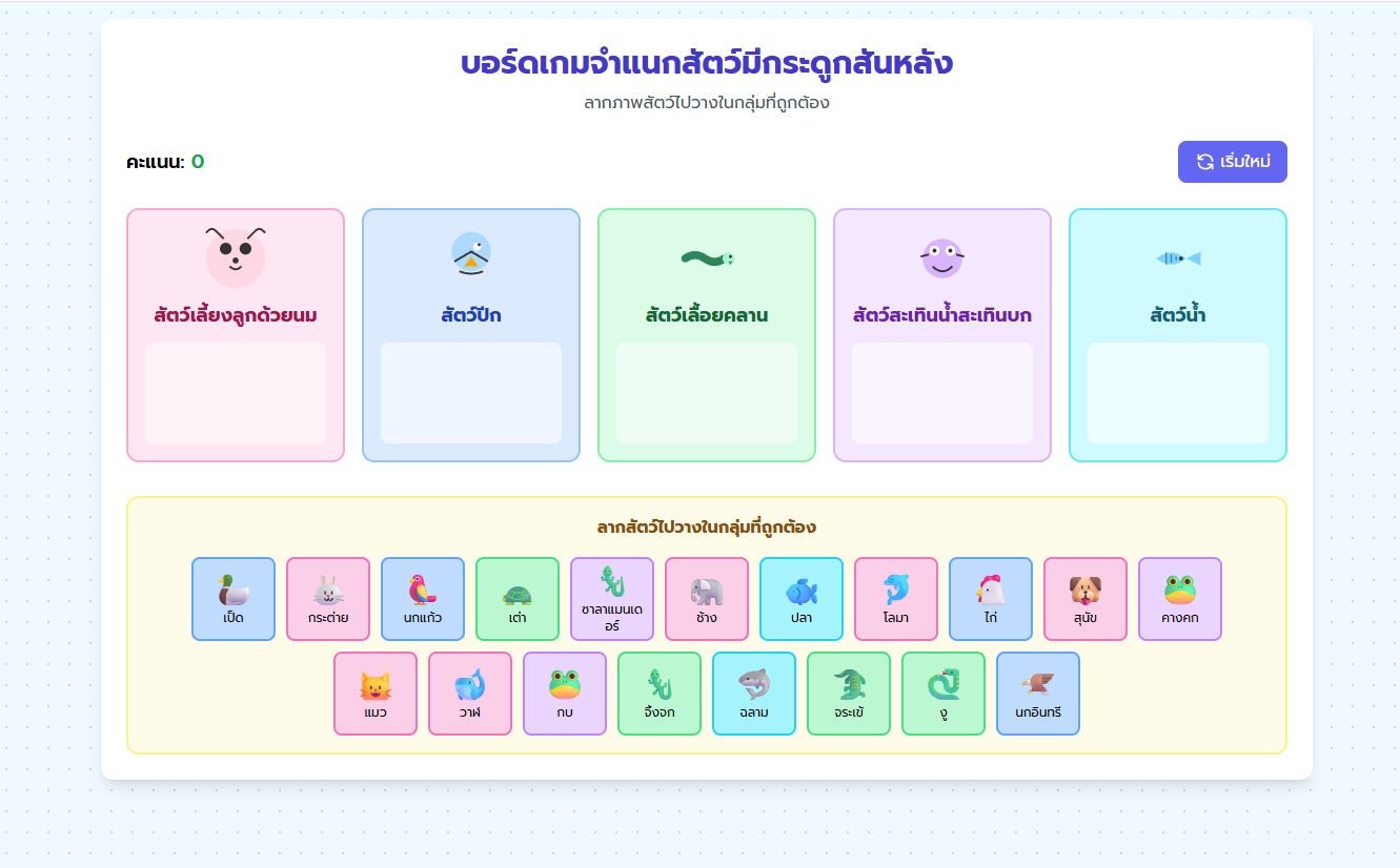บอร์ดเกมแยกให้ถูกเจ้าสัตว์มีกระดูกสันหลัง