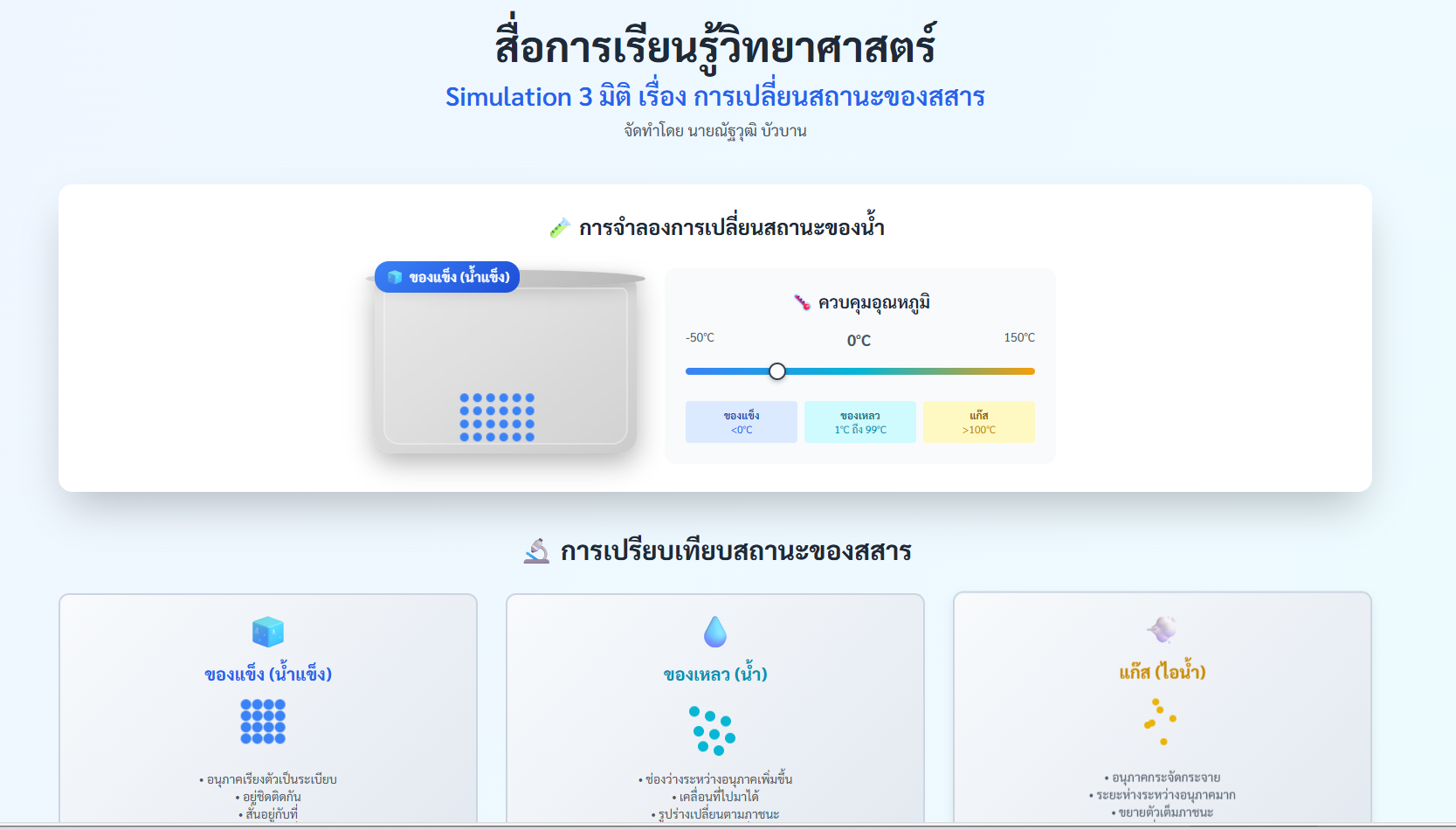Simulation 3 มิติ เรื่องการเปลี่ยนสถานะของสสาร